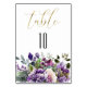 Purple Violet Watercolor Bouquet Gold Script Table Number