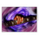 A digital image of a hand grasping onto a guitar neck while being sucked into a swirling purple vortex like a psychedelic black hole.
