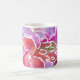 A pretty white mug with an all-over design from an original watercolour painting of purplish pink wallflowers.