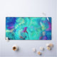 Aqua green and turquoise blue abstract art is coloured like the Caribbean Sea with bright splotches of violet and purple. A bit of purple and indigo looks like a slender sprite dancing in the middle of the water scene. This art makes you think of tropical scenes and beach life.