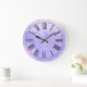 Free your inner decorator! Wall clocks are an inexpensive and beautiful addition to any room. This gorgeous wall clock has a purple or violet watercolor design, with Roman numerals for numbers. This stunning wall clock would look great in a kitchen, bedroom, or living room. It's easy to read, inexpensive and makes a great housewarming or other gift.
