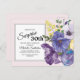 Elegant and botanical purple and yellow watercolor floral on pink surprise 30th birthday party invitation postcard.