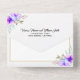 Purple watercolor flowers and frame lilac floral all in one wedding invitation. A lovely wedding design that includes watercolor flowers in tones of purple accented with blue and leaves. The details are in a white frame. The tear-off RSVP card can be detached.
