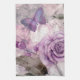 Purple Watercolor Rose and Butterfly Tea Towel