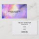 An elegant business card template with a nice combination of pastels and bright colours. A colourful abstract painting with a cosmic space image in pink, purple and yellow watercolors. The colours blend and mix together creating luminous ethereal forms with little twinkling stars peppered throughout.