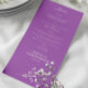Minimalist wedding dinner menu designed to coordinate with our whimsical purple wildflower wedding stationery collection. Clean, crisp typography, coordinating background colours. ❀❀❀