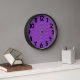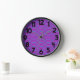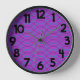This wall clock has a Boho design of purple and turquoise waves on a field of light purple.