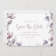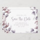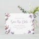 Purple Wedding Save the Date. Soft, dreamy, and romantic, this stylish wedding save the date features a gorgeous watercolor frame of leaves & flowers hand-painted in monochromatic shades of purple, plum, and soft pinks with matching purple script & text. The back of the invitation includes the same frame of leaves. Find matching items in the Elegant Purple Botanical Wedding Collection.