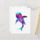 traditional watercolor artwork of a very colourful giant whale shark in surreal blue and purple colours on a postcard