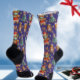 This festive seamless print is designed for the Christmas season and is perfect for wearing during shifts at hospitals or clinics. It features a playful design with a purple background that showcases gingerbread girls dressed as nurses. The print also includes elements like cookie-shaped bows and Christmas trees alongside stethoscopes. These high-performance athletic socks are created to provide comfort and support for everyday tasks at work, making them an excellent choice for Christmas gift exchanges.