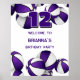 This basketball themed birthday party welcome poster is fully customisable and features randomly arranged purple and white basketballs at the top and bottom edges of the poster - personalise your custom message and the child's age, or customise the text to suit your event - by katz_d_zynes