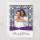 This black and white damask photo wedding invitation has a purple PRINTED ON ribbon and jewelled brooch. It would be perfect for a purple and black themed wedding. The text and paper is all customisable. If you require any other matching items, please email your request to niteowlstudio@gmail.com.
