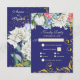 © Socialite Designs & LICENSORS. Elegant gold flourish, with purple / royal blue background, wedding RSVP with watercolor florals, in white, purple/blue, pink and green, ready to be personalised for your special event. Font style, text and paper type can be changed. Need HELP with customising or additional products with this design? Please do not hesitate to contact Socialite Designs.