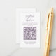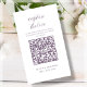 Purple and white capture the love QR Code cards. Place these cards at your wedding reception tables so guests can scan to upload the photos they took at your wedding reception to your album or social media. To generate a new QR code on the design, add the URL of your online wedding album or social media handle in the area provided, using the "personalise" feature. A brand new QR code will then be added to to the design.