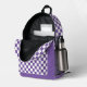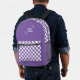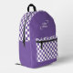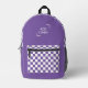 Purple White Chequerboard Check Pattern Logo Printed Backpack features a retro purple and white chequerboard pattern with your custom business logo. Perfect for corporate gifts, school, sports, gym, travel and more. Designed by ©2025 Evco Studio www.zazzle.com/store/evcostudio