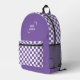 Purple White Chequerboard Check Pattern Logo Printed Backpack