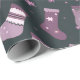 Adorning this wrapping paper are super cute purple and white Christmas stockings, meticulously arranged to capture the essence of holiday charm. The playful stockings, in vibrant purple and crisp white hues, pop against the black backdrop, creating a visually striking and delightful contrast. Their intricate designs and adorable details add a touch of whimsy to your gifts, making them even more special for the holiday season.