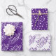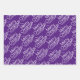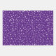 Purple and white Christmas typography and dots holiday Wrapping Paper Sheets. The first sheet features the text "Merry Christmas" in white on purple, the second white polka dots on purple and the third the text "Merry Christmas" in purple on white.