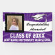 Grape purple and white high school or college colours. Big giant yard sign or indoor/outdoor banner, Congratulations to the graduate of the class of (your year). Customise this personalised yard banner sign with your graduate's photo, name, year and school or other custom text. Personalised outdoor or indoor graduation party sign banner with your graduate's year, name, high school. Spectacular way to congratulate the graduate and welcome family and guests to your graduation party .