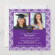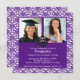 Purple & White Damask Photo Graduation Invitation