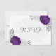 purple white flowers silver botanical wedding RSVP card