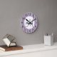 Classic slim purple faux glitter and white vertical stripes as background. A frame on front with template for a name. The name is written with a hand-lettered style script. Template for Your monogram letter. Black numbers.
