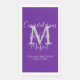This paper guest towel can be any background colour you select. Background is purple; monogram is grey in classic serif font; text is white. A great gift for a wedding or housewarming or graduation party. Guests will appreciate having disposable hand towels available, especially with the recent health scare. All Rights Reserved © 2025 Alan & Marcia Socolik..