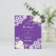 For an elegant and romantic wedding. A purple coloured background decorated with white florals, roses and white lace. Personalise and add your names and details.