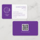 Purple White Logo QR Code Minimalist Modern Corporate Business card features your corporate logo, with your name, designation, website and contact details. On the reverse is your QR code for your customers to scan. Personalise by editing the text in the text box provided. Designed by ©2025 Evco Studio www.zazzle.com/store/evcostudio