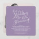 Simple modern wedding live video steaming invitations with your own photo on the reverse. Simple contemporary script text purple and white design. Personalise with your own wedding streaming details, brides and grooms names and details to watch and take part from a distance. Matching mono script text wedding products and other colour options are available in the store. © Original design by www.mylittleedenweddings.com