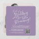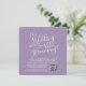 Simple modern wedding live video steaming invitations with your own photo on the reverse and easy QR code for joining. Simple contemporary script text purple and white design. Personalise with your own wedding streaming details, brides and grooms names and details to watch and take part from a distance. Matching script text wedding products and other colour options are available in the store. © Original design by www.mylittleedenweddings.com