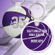 This easy-to-personalise basketball team colours keychain features the realistic image of a basketball that has alternating purple and white recolored panels on the front and a simple purple basketball shape on the back - easily personalise with player name & jersey number on the front and school or club name & mascot name on the back - by katz_d_zynes