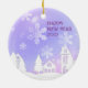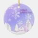 Purple White Translucent Snowflakes Snow House Ceramic Ornament