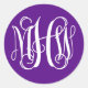 Purple White Vine Script Monogram DIY BG Classic Round Sticker