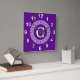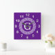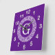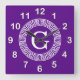 Purple Wht Greek Key Rnd Frame Initial Monogram Square Wall Clock