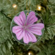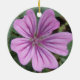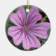 This pretty pendant style ornament features a detailed photograph of a pretty purple wildflower with deep ridges in the petals. The photograph was taken in Britain. Macro photography was used to capture the delicate beauty of this beautiful flower.