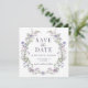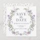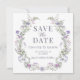 Sophisticated and rustic, this botanical save-the-date photo invitation features an elegant boho design with a purple lavender wildflower wreath.