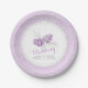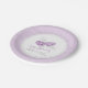 Pine cone drawing art personalised wedding paper plates with purple weave fabric outer. Pretty pastel shades of purple, grey and white. A perfect finishing touch to your pine cone wedding tables. Customise with your own wedding names. Ideal for winter or rustic country weddings. Unique drawing and design by Sarah Trett.