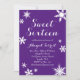 A sprinkling of snowflakes decorates this fun Sweet Sixteen party invitation, on a deep purple background. If additional coordinating items are needed for your event, just contact us at prettyfancyinvites@gmail.com with your request.