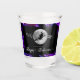 Elevate your Halloween drinking gifts with this Purple Witch Silhouette Halloween Shot Glass. This spooky design features a witch silhouette soaring on a flying broomstick against a glowing full moon with star trails, set on a mystical marbled background. The Happy Halloween text in elegant script adds festive charm. Crafted from durable glass, it’s perfect for toasting at spooky gatherings. Dishwasher-safe, this shot glass brings enchanting style to your Halloween celebrations.
