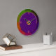 A painterly trendy wall clock. Main Colour of deep purple with Multicolored border and pink orange numerals