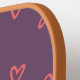 This modern pickleball paddle design features an purple with pink hearts background, with your initial in bold purple text for a look that is simple and stylish, yet professional.
