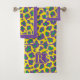 Purple, yellow, green leopard print and monogram bath towel set