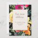 Elegant, girly, and feminine purple, yellow, and orange watercolor floral with green leaves on black Change of Address/Moving Announcement card.