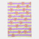Chic purple and yellow stripe flower pattern kitchen towel featuring stylish tropical blooms, whimsical botanical motifs, and retro spring summer charm for a vibrant nature-inspired accent.