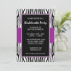 A sassy purple zebra design is featured on this trendy bachelorette party invitation.