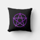 Purple Zebra Print Pentagram on Black Cushion