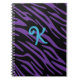 Black and Purple Zebra Stripe Spiral Monogram Notebook. Perfect for taking notes or writing a journal or diary, etc.
