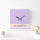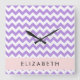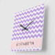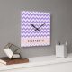 Purple Zigzag, Purple Chevron, Your Name Square Wall Clock