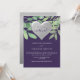 Elegant, modern purple zoom wedding invitation with rustic watercolor greenery and silver heart. Perfect choice for modern and romantic virtual wedding celebration.